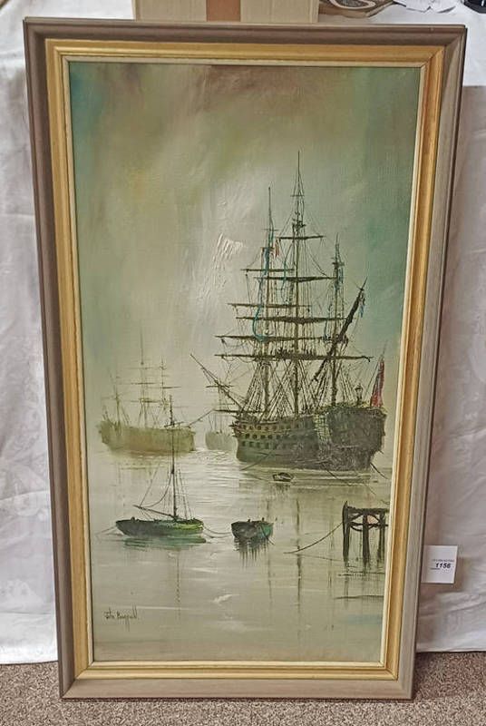 John bampfield 3-masted ships signed framed oil on canvas 90cm x 44cm