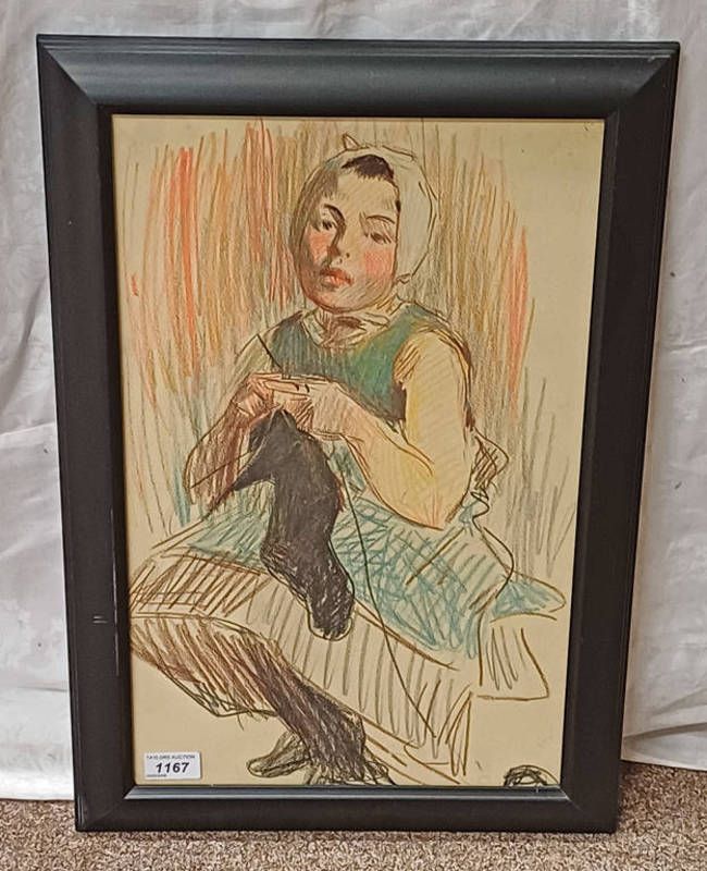 Late 19th/early 20th century pastel sketch of a young woman, 47cm x 29cm