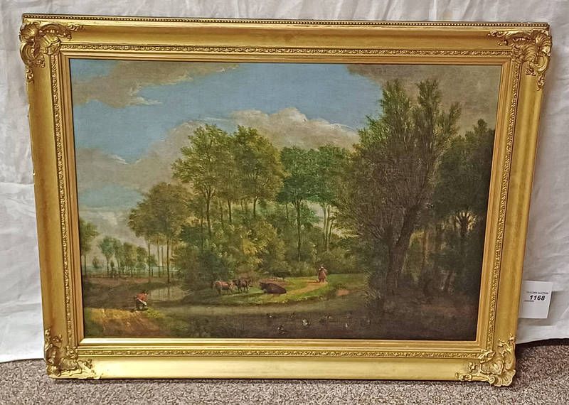 18th century oil on canvas of an extensive landscape with figures - north european school