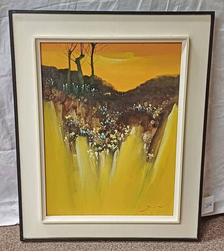 Contemporary oil on canvas of flowers on a sand dune, signed indistinctly, 59cm x 44cm