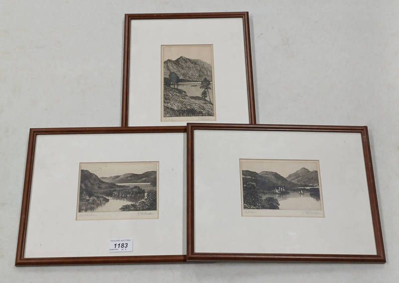 3 framed etchings by e. richards, loch awe, loch ness and loch katrine, all signed and titled in pencil