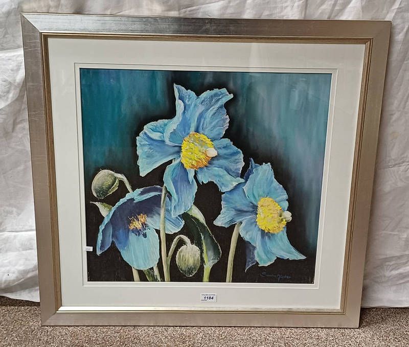 Sandra m lister ''blue'' signed, label to reverse framed pastel 50cm x 53cm