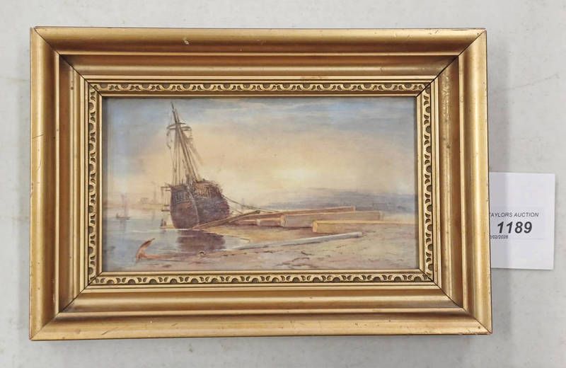 Gilt framed watercolour of a harbour scene, unsigned, 11cm x 20cm