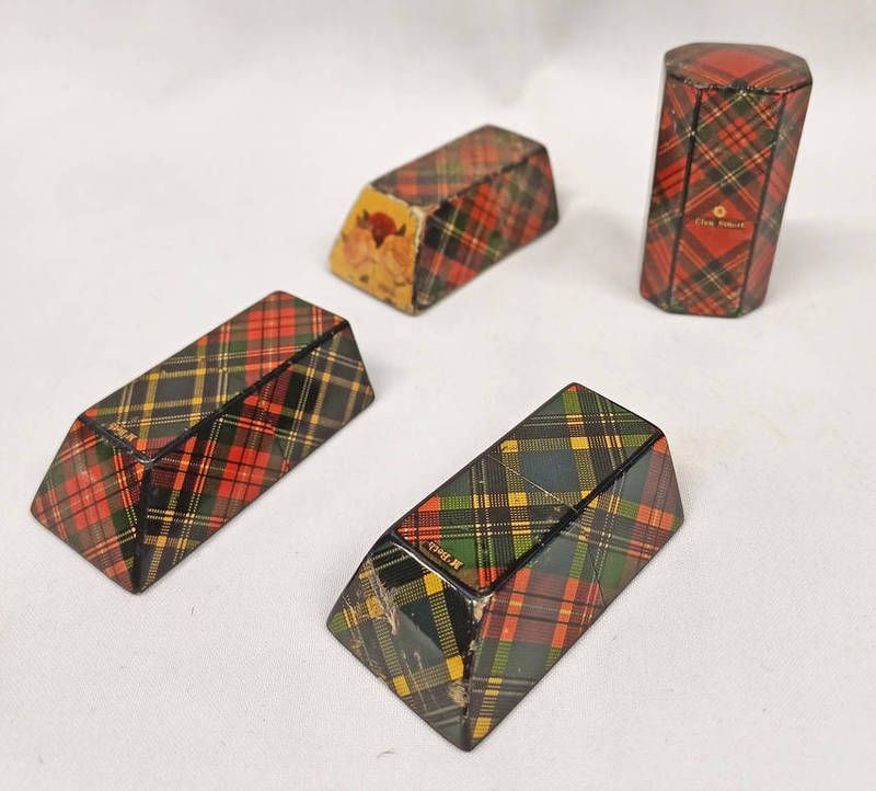 Four 19th century tartan ware needle holders, 2 x mcbeth, 1 x clan stuart and 1 x prince charlie, longest 6cm -4-