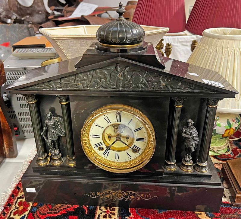 Late 19th or early 20th century mantle clock with corinthian columns to front, 40cm tall