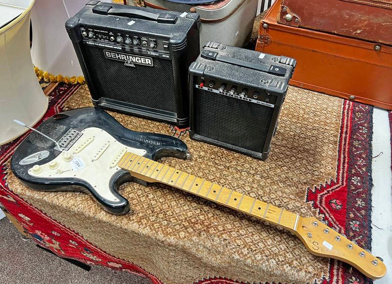 6 string electric guitar, bb blaster 10 watt amp and a behringer gm108 amp -3-