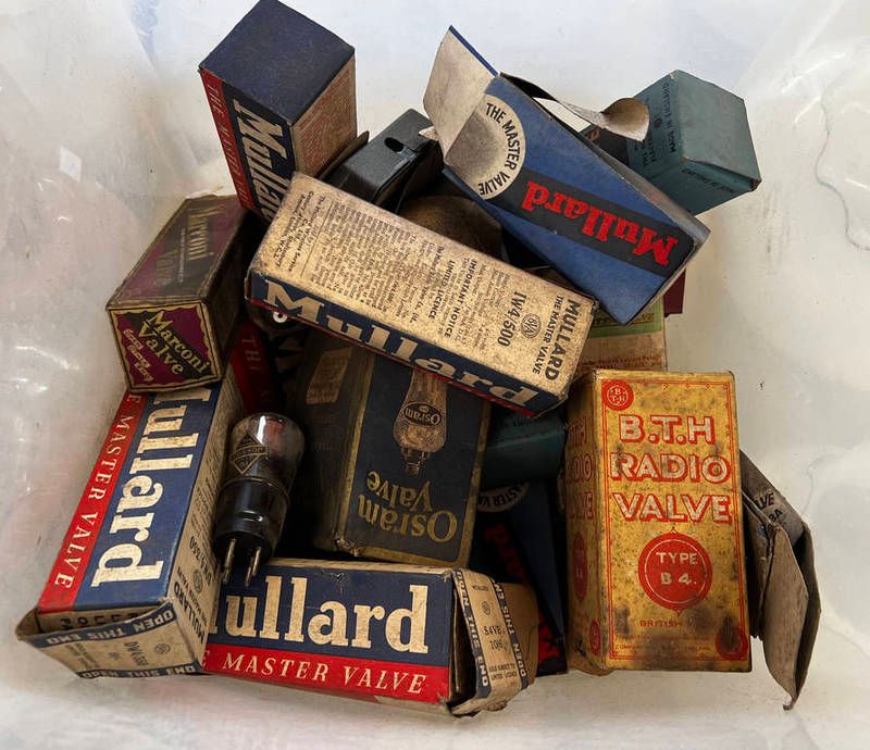 Selection of vintage valves to include makers such as mullard, marconi, etc, in one box