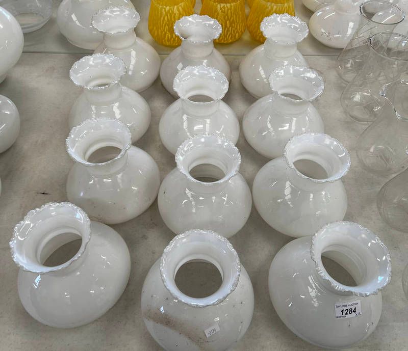 12 matching white glass light shades