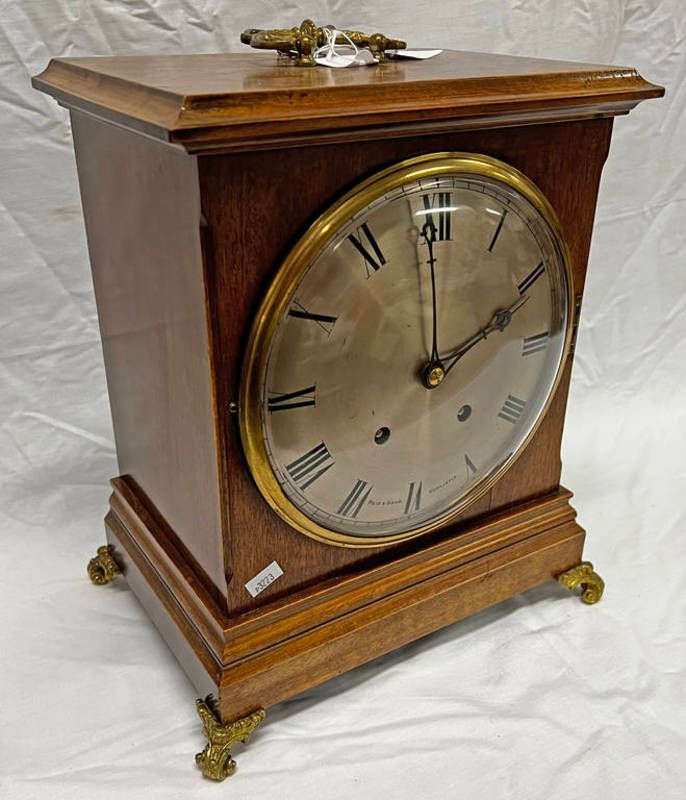 Late 19th or early 20th century regency chiming bracket clock with silvered dial marked reid & son newcastle, works by winterhalder & hofmeier, 34.5cm tall