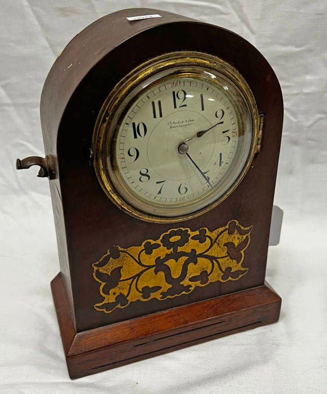 Early 20th century mahogany mantle clock, the dial marked ritchie & son edinburgh, with brass plaque to front, 25cm tall
