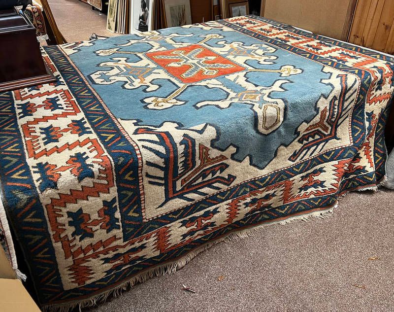 Large middle eastern carpet with geometric & border design, 286 x 217cm