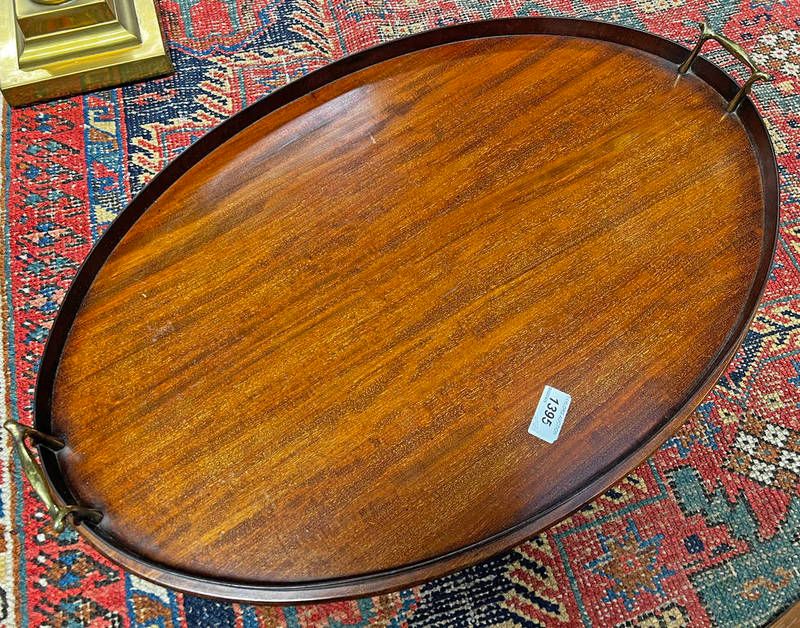 Late 19th or early 20th century mahogany serving tray with brass handles