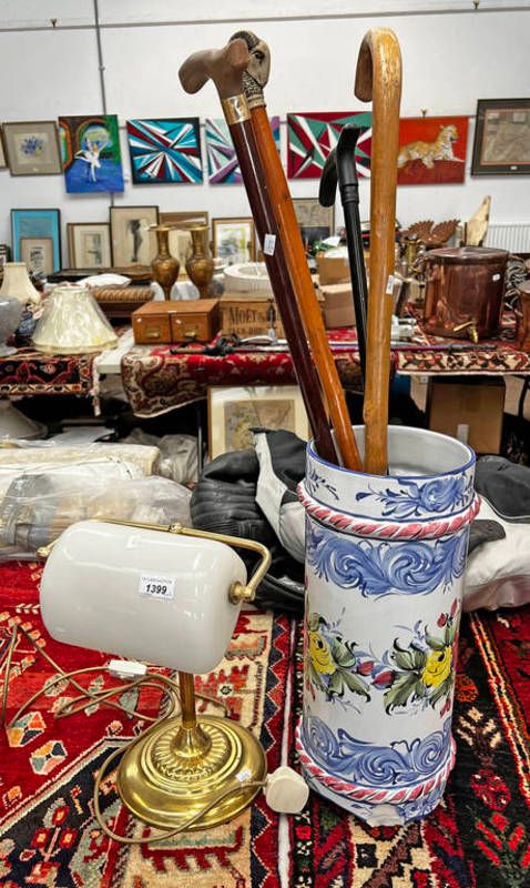 Bankers table lamp, stick stand and sticks
