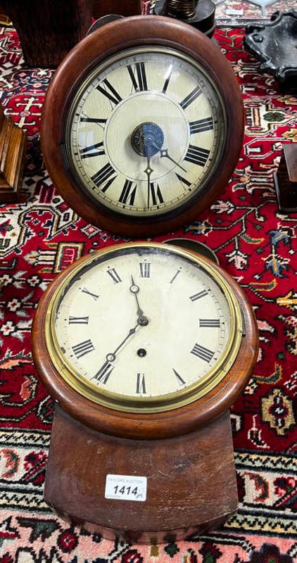 Late 19th century mahogany wall clock and another similar wag at the wall example -2-