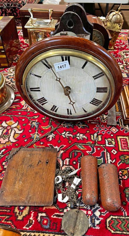 Late 19th century mahogany wall clock and another similar wag at the wall example -2-