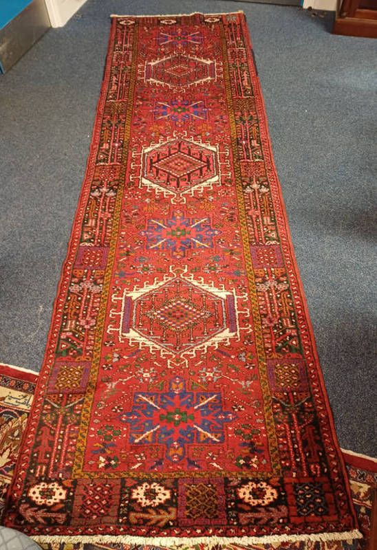 Large hand woven persian heriz runner from northern iran, 379 x 99cm