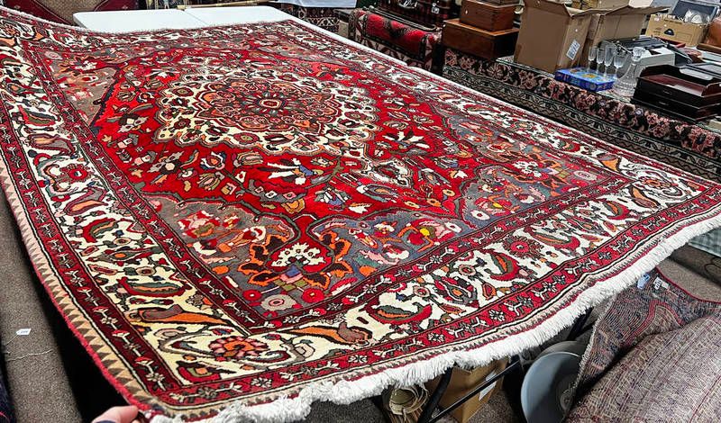 Rich coloured full wool pile persian rug with large floral medallion pattern, 255 x 165cm