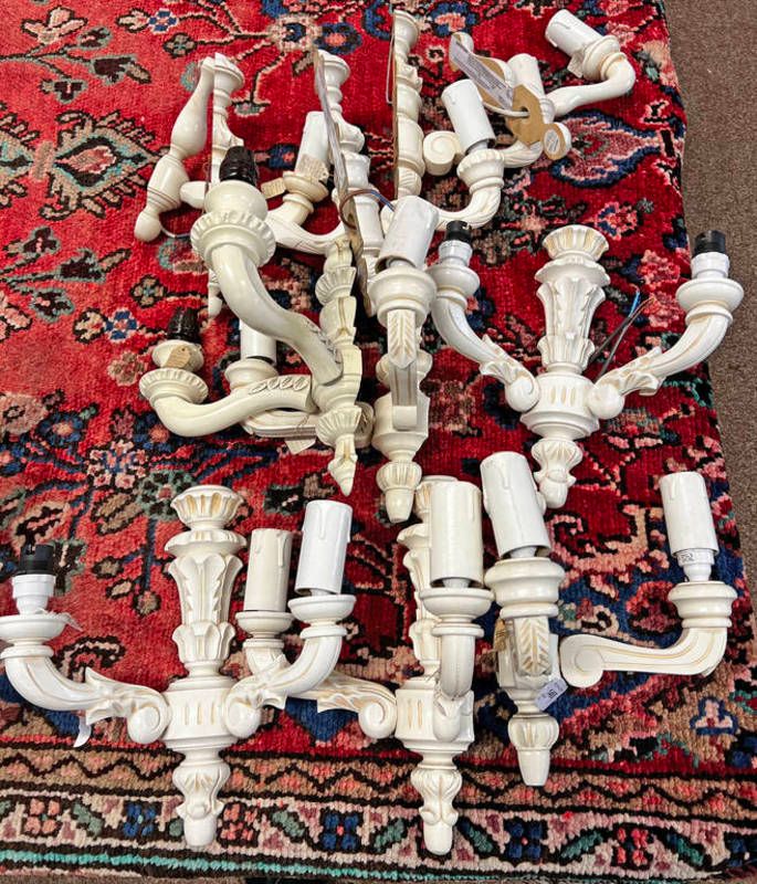 Six 2 branch wall sconce light fittings and 5 single branch wall sconce light fittings