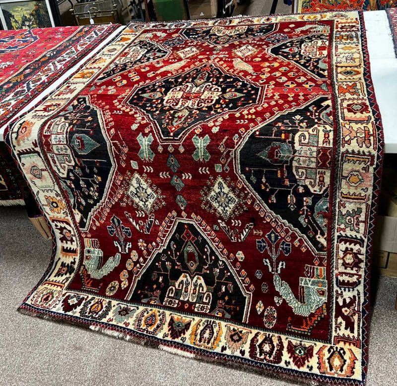 Hand woven full wool pile persian shiraz village rug with traditional design, 158 x 250cm