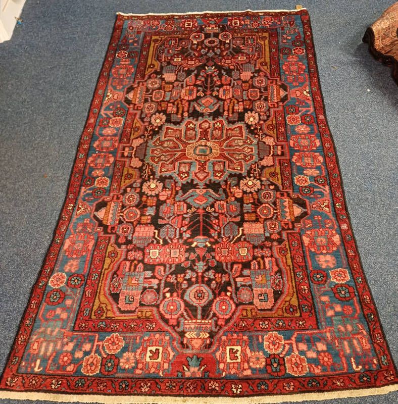 Rich coloured full wool pile persian rug with large floral medallion pattern, 255 x 165cm