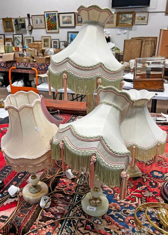Pair of gilt metal table lamps with twisted shaft design along with a pair of...