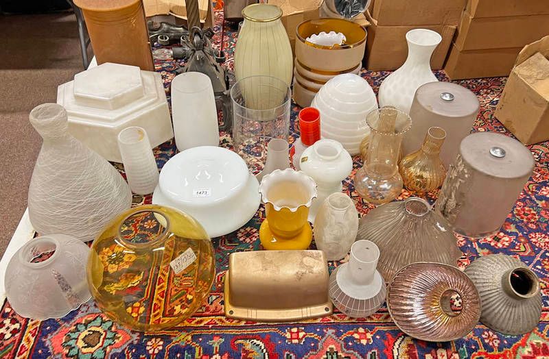 Selection of various vintage and other glass shades etc