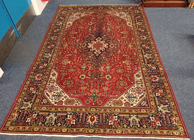 Full wool pile hand woven persian tabriz carpet with multicoloured traditional floral pattern, 293 x 195cm