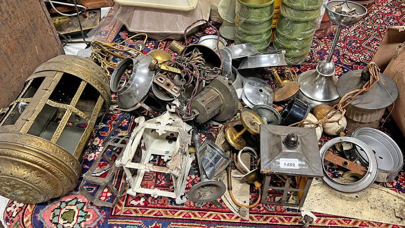 Two tea chests containing various vintage electrical fittings, fixings etc