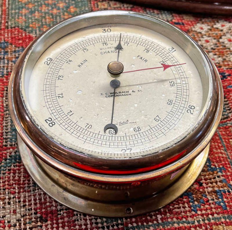 Sestrel brass bodied ships bulk head barometer with dial marked i c weilbach & co copenhagen