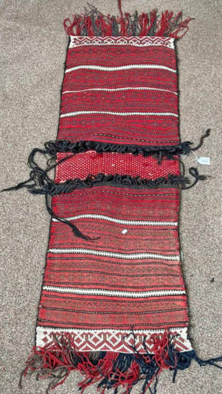 Stripped red middle eastern saddle bag / rug with pouches