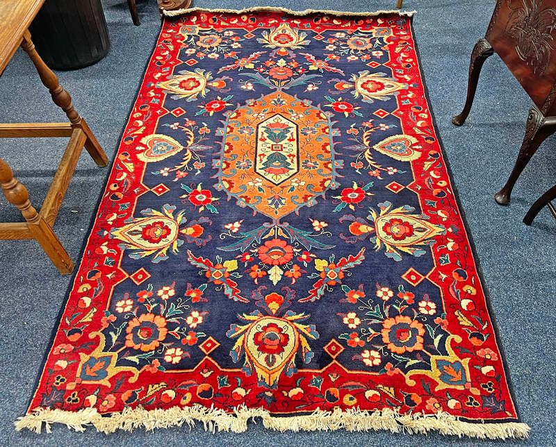 Rich coloured full wool pile persian rug with large floral medallion pattern, 255 x 165cm