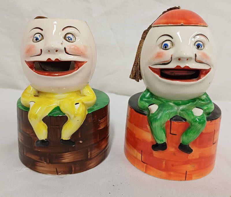 Pair carlton ware humpty dumpty stamp dampers 12. 1/2 cm tall with reg numbers to underside