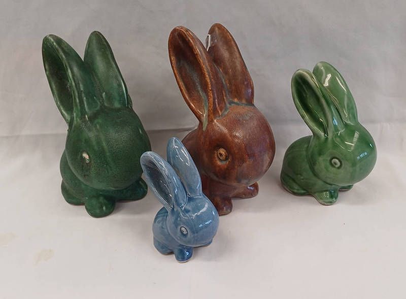 Denby ware rabbit cottontail & 3 other denby ware rabbits