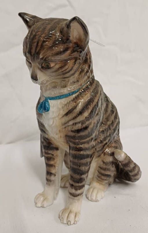Ernst bohne & sohne porcelain cat, blue anchor mark to underside - 17cm tall