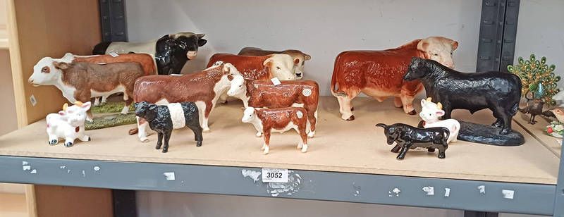 Selection of various cattle figures from border fine arts, sherratt & simpson and other over one shelf
