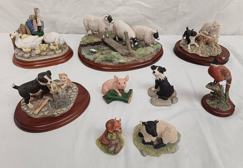 Selection of border fine arts figure groups including black faced ewes, helping hands, settle down, etc