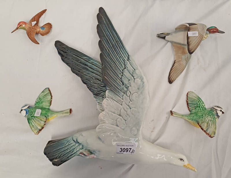 Porcelain, american teal drake signed peter scott & 4 other flying birds including beswick
