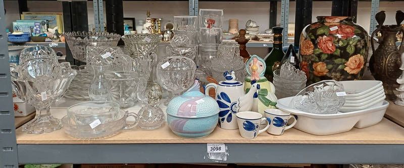 Selection of various crystal & porcelain including vases, pedestal bowl, jugs and others over one shelf