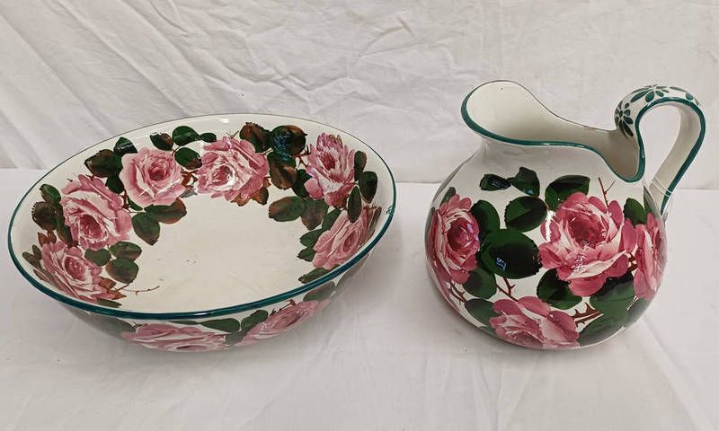 Wemyss ewer & basin decorated with roses signed in green & retailed by t goode & co