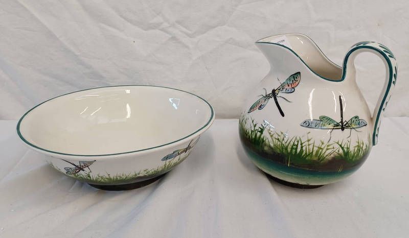 Griselda hill pottery ewer & basin decorated with dragonflies