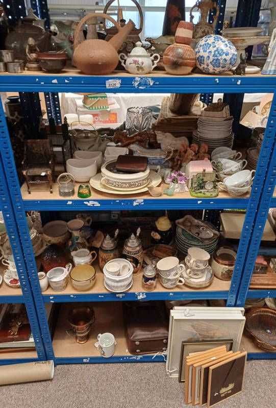 Large selection of porcelain etc, including oriental teaware, porcelain vases, etc, on 4 shelves