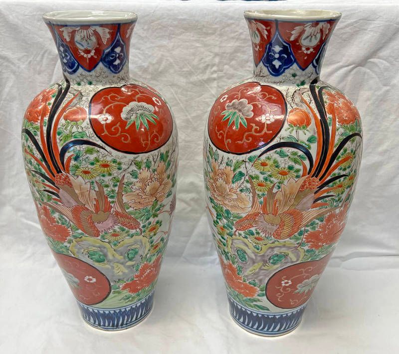 Pair of 19th century japanese imari vases decorated with exotic birds & flowers - 40cm tall