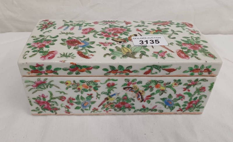 Canton porcelain rectangular box with floral & bird decoration length -21 cm