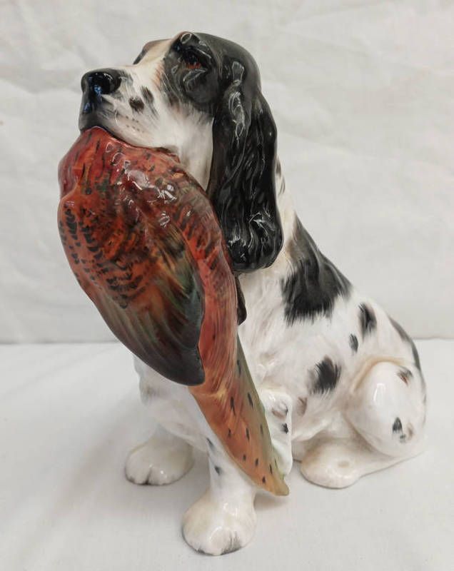 Royal doulton black & white spaniel with pheasant hn1137