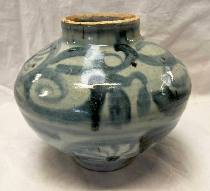 18th century blue & white chinese provincial pottery vase - 18cm tall