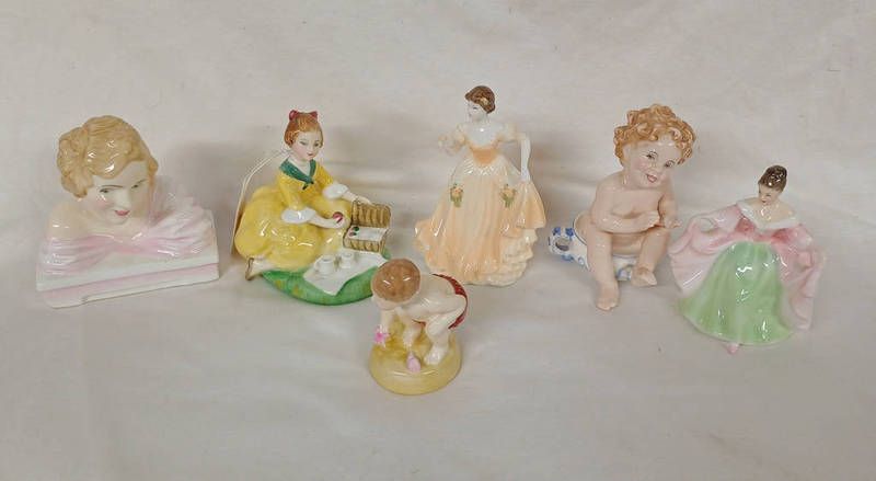 6 royal doulton figures including sea shore hn 2263, well done hn 3362, picnic hn 2308 etc.