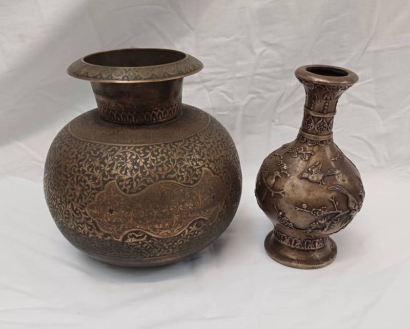 Chinese baluster shaped metal vase with 6 character mark to base & indo persian brass vase tallest - 19cm