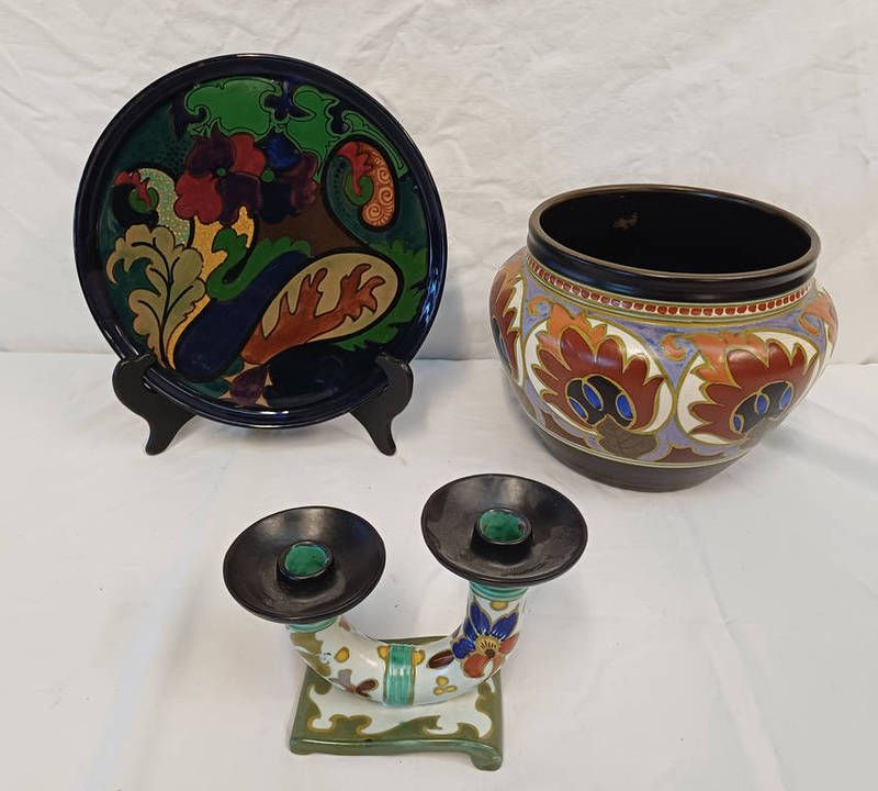 Gouda jardiniere, gouda plaque & gouda 2-branch candelabra