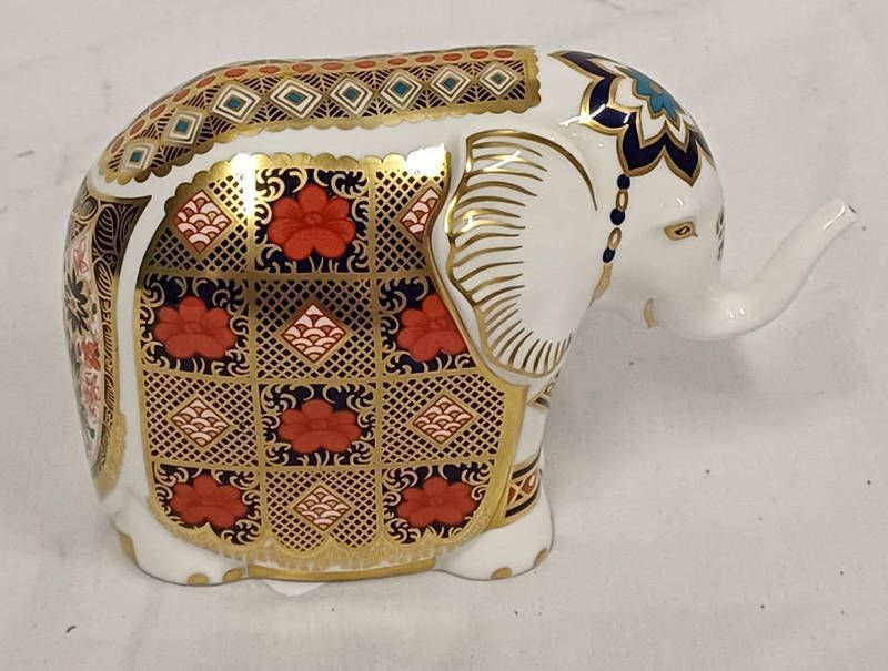Royal crown derby elephant paperweight, gold stopper