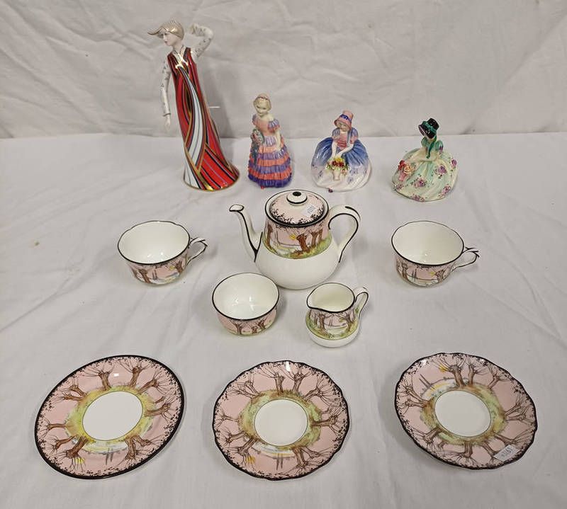 Selection of porcelain to include royal crown derby the classic collection ''penelope'', royal doulton pollard willow pattern tea for two, and 3 royal doulton figures including ''the little bridesmaid''